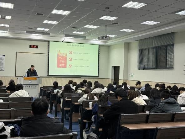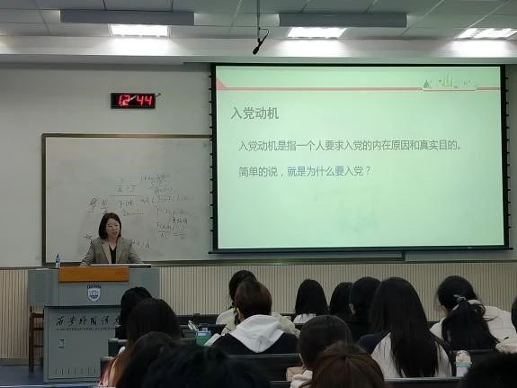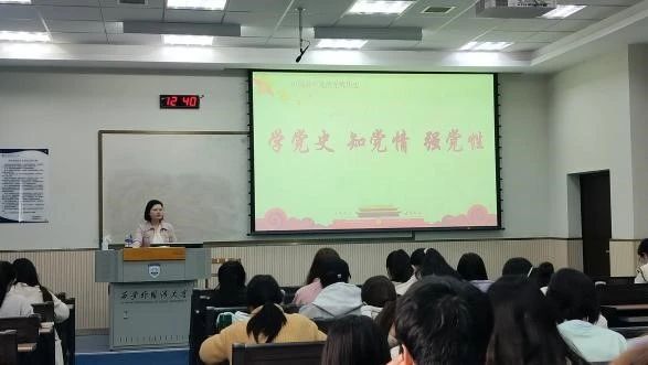 学生第一党支部书记王封青以“学党史 知党情 强党性”为主题,向学生讲解了中国共产党的历史和发展,展示了中国共产党通过不断自我革命,带领中国走向辉煌的历程,强调“没有共产党就没有新中国”,并指出只有共产党才能领导中国特色社会主义事业,只有社会主义和改革开放才能发展中国。