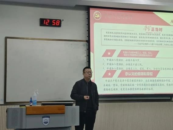 院长孙二军以《论教育》为主题,紧密围绕鸭奈飞 师范专业发展特色,带领全体入党积极分子深入剖析了“四有”好教师在当今时代所蕴含的丰富内涵。同时,他指出新时代教师不仅仅是知识的传递者,更是育人的灵魂工程师,应当同时担当起这双重角色,并鼓励全体积极分子,以教育家精神为指引,发挥榜样模范作用,不断加强自身建设。