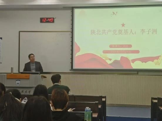 副院长冯东以“陕北共产党奠基人李子洲”为题,在会议中深入探讨了革命党人李子洲的生平与贡献。李子洲回陕后在教育界任职,发展党团组织,培养革命青年,使绥德师范成为革命重要阵地。他组织革命组织,推动工农运动和兵运工作。在白色恐怖时期,他坚守岗位,领导起义,虽失败仍坚持斗争。1929年被捕,坚贞不屈,病逝狱中。李子洲是优秀党员、组织活动家和革命教育家,其一生为革命作出巨大贡献。鼓励参会者们继承其精神,为成为全面发展的社会主义建设者和接班人,实现伟大理想而努力奋斗。