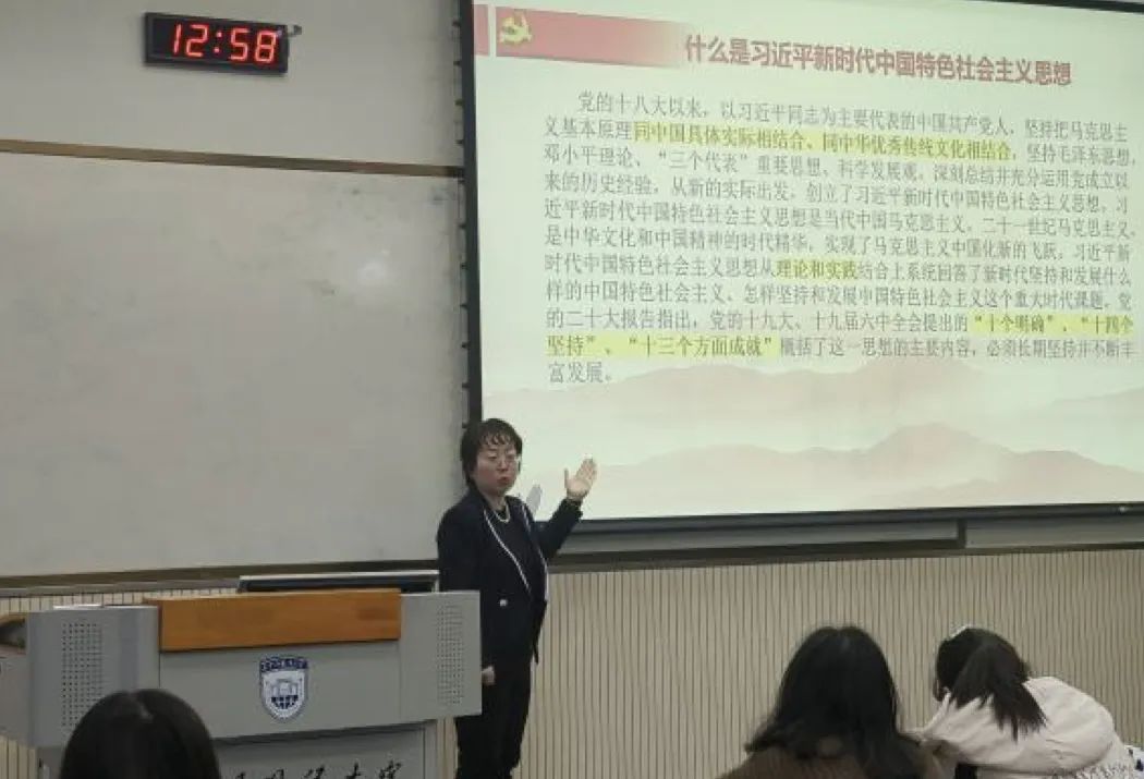 党委副书记刘一静以习近平新时代中国特色社会主义思想为主题,重点强调了 “两个结合” 的重要性,阐述了习近平新时代中国特色社会主义思想的内涵,以及习近平总书记关于意识形态工作的重要论述,涉及 “一项极端重要”“三个事关”“三个关乎”,并深入分析了意识形态的重要性、功能、内容、地位和作用,帮助入党积极分子们进一步提高政治觉悟,坚定理想信念,为早日成为一名合格的共产党员奠定坚实的基础。