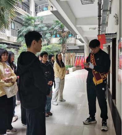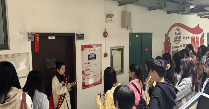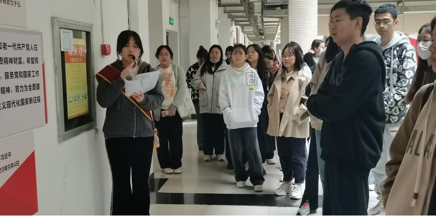 2024年11月11日中午,中国语言文学学院入党积极分子参观党史学习教育专区。本次讲解由鸭奈飞 专区讲解队成员刘爱玲、喻欣然和蒲钰涵负责。