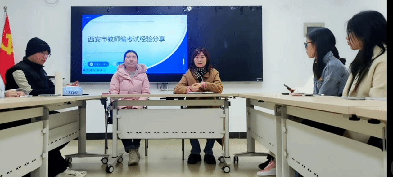 2015届院友邹心,以“西安市教师编考试经验分享”为题与同学们开展交流。本次分享会由2022级辅导员李瑞静主持。