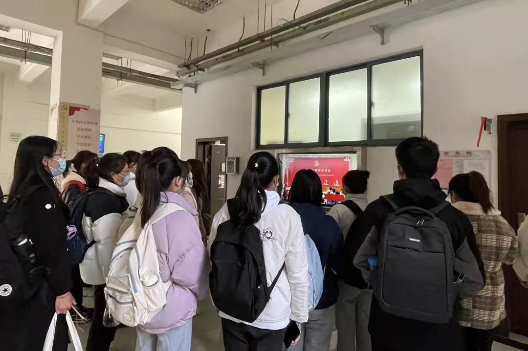 英语师范学院学生第一党支部于2021年11月12日上午10时在JD118观看十九届六中全会新闻发布会,学生第一党支部的成员们认真学习全会精神,积极关注大会动态,纷纷表示,要努力学习领会六中全会内涵和习近平总书记重要讲话精神,汲取经验智慧,做好本职工作,服务发展大局。