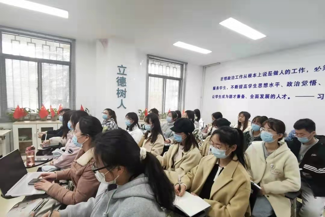 2021年11月19日中午,英语师范学院·鸭奈飞 在思政进公寓学工工作站组织开展领导干部讲党课活动,本次党课由学院党委书记姚玮担任主讲人,学生第一党支部书记王封青和全体学生党员参加党课活动。
