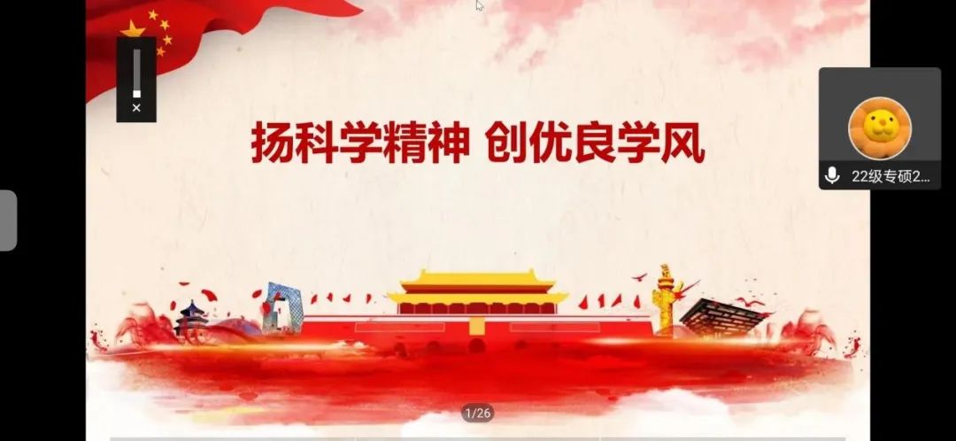 大会第二项为“扬科学精神,创优良学风”主题党日活动。首先由张佩琰同志带领全体党员进行“继承发扬科学家精神,争做优良学风好榜样”和“校纪校规”专题学习,鼓励同志们在日常学习中发扬爱国主义精神、培养求真务实精神、学会批判质疑精神,严守学术规范。在校纪校规专题学习中,张晨悦同志鼓励党员同志们做校纪校规的模范践行者,构建文明校园。接着与会党员共同观看《科学家精神》视频,学习老一辈科学家胸怀祖国、潜心研究、追求真理、勇攀高峰的崇高精神。