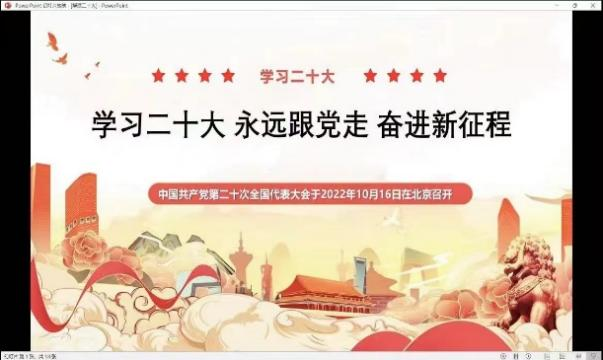 会议伊始,主持人带领全体成员从大会主题、三件大事、以及中心任务这三个方面进行学习,使全体成员从理论层面进一步了解党的二十大内容。