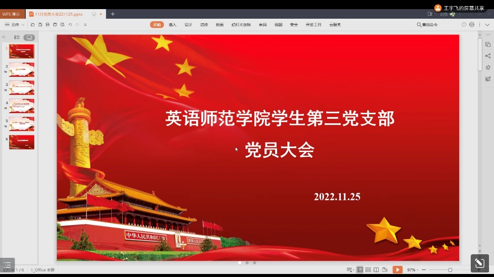 学生第三党支部线上召开十一月党员大会暨主题党日活动。本次会议由学生第三党支部副书记王宇飞同志主持,支部全体学生党员参加。