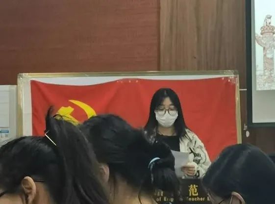 会议第二项,讨论接收预备党员。19名发展对象汇报对党的认识、入党动机、本人履历、家庭和主要社会关系情况,以及需要向党组织说明的问题。随后,入党介绍人分别对发展对象的培养考察情况进行阐述,肯定其表现的同时也对存在的问题与不足及未来的改进方向提出意见与建议,对其能否入党表明意见。紧接着,支部书记代表支部汇报对发展对象的审查情况。最后,与会正式党员充分讨论并进行无记名投票表决,全票通过同意接收赵品颐等19名同志成为中国共产党预备党员。