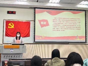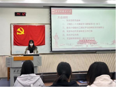 会议第二项,支部党员代表赵梦瑶带领支部成员学习《党的二十大报告学习辅导百问》,从“教育、科技、人才的地位作用”、“全面提高人才自主培养质量”以及“教育的根本问题”等三个方面详细阐述新时代实施科教兴国战略,强化现代化建设人才支撑的重大战略意义以及以习近平同志为核心的党中央对新时代教育事业的总体战略部署,引导支部成员深入学习领会党的二十大精神的丰富内涵、精神实质、重大意义,全面理解教育、科技、人才,在全面建设社会主义现代化国家中的地位作用,深刻认识新时代加快建设教育强国、科技强国、人才强国的历史使命。