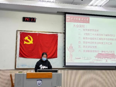会议第四项,支部书记汇报年度工作情况。王鑫从支部政治理论学习、支部设置、党员教育管理等方面汇报支部工作,并总结工作中存在的问题及改进措施,提出党员同志应发挥先锋模范作用,创新学习形式,改变工作态度,提升能力素质。支部也将进一步加强支部建设,努力发挥好基层党支部的战斗堡垒作用。