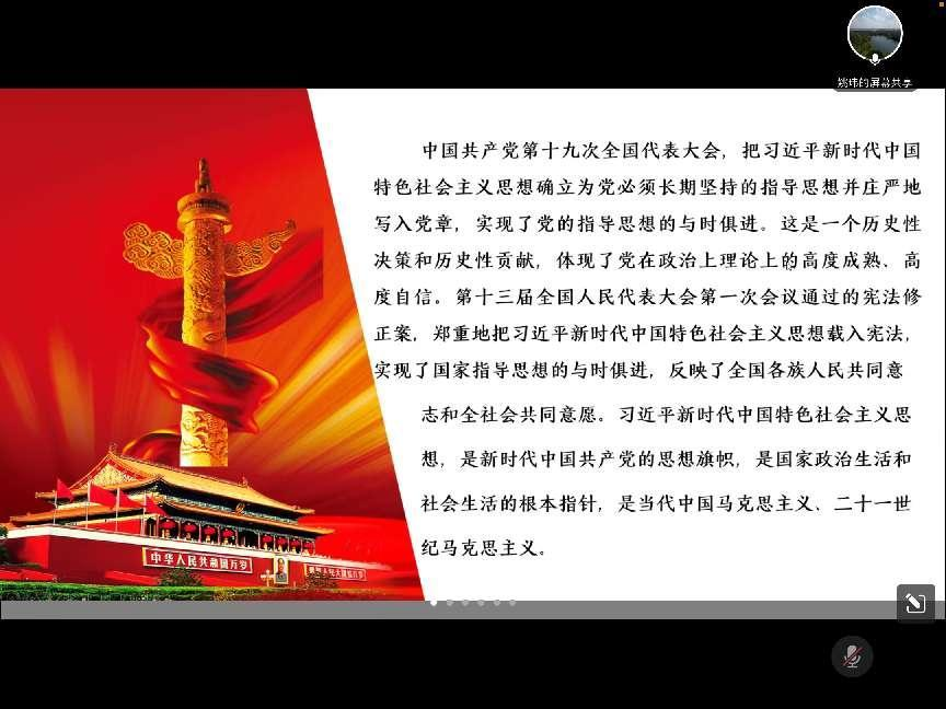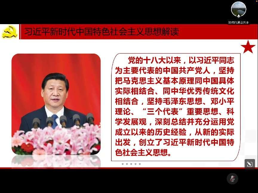 首先,姚玮带领大家分析了党的十八大以来,中国特色社会主义进入新时代,世情国情党情发生的深刻变化,我们正面临世界百年未有之大变局等一系列的挑战,党中央从新的实际出发,创立了习近平新时代中国特色社会主义思想。并且通过宪法和党章进一步明确习近平新时代中国特色社会主义思想在全党的核心地位。