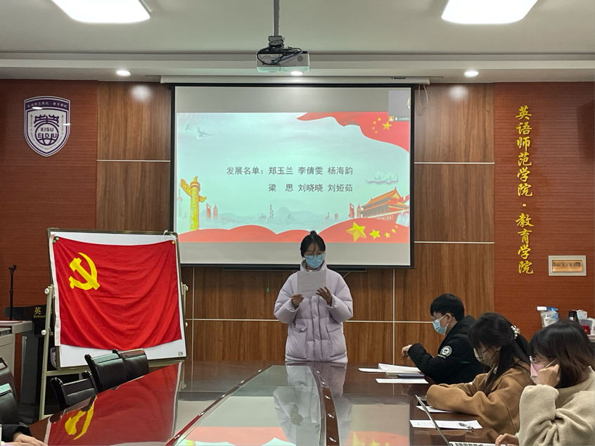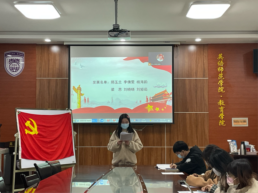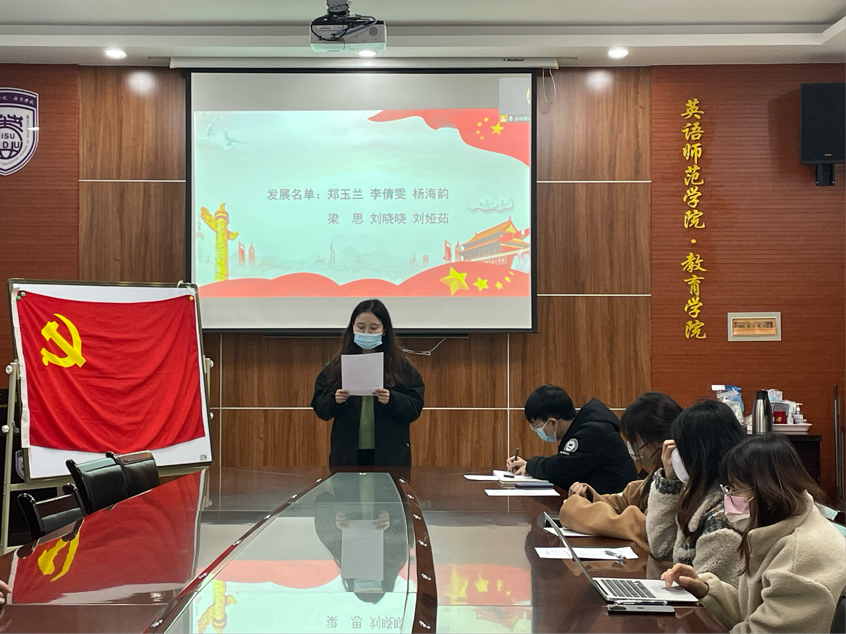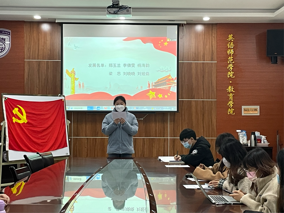 首先召开党员发展大会。郑玉兰、杨海韵、梁思、李倩雯、刘娅茹、刘晓晓6名同志依次汇报了她们自确定为入党积极分子以来学习、工作、生活等方面的实际情况,深刻剖析自我。随后,6名发展对象的入党介绍人依次向党组织汇报了她们的培养考察情况,综合全面地对以上6名同志进行评价并发表意见。支部宣传委员戴梦娟代表支委会报告了对六名发展对象的审查情况。听取报告后支部大会进行充分讨论并表决,一致同意接收郑玉兰等6名同志为预备党员。
