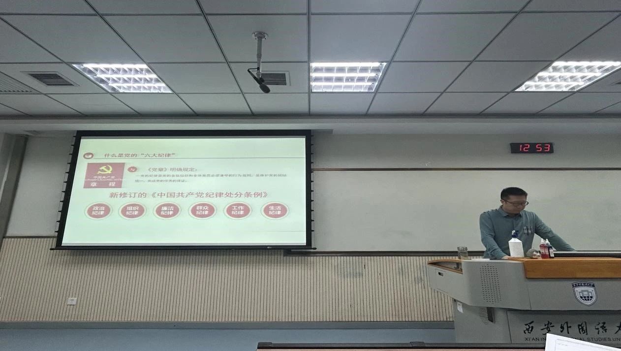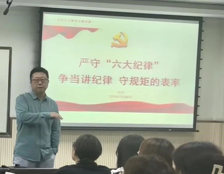 党委书记姚玮担任主讲人,围绕“严守六大纪律,争当讲纪律、守规矩的表率”主题讲授党课,2023级党支部全体党员以及入党积极分子参加。