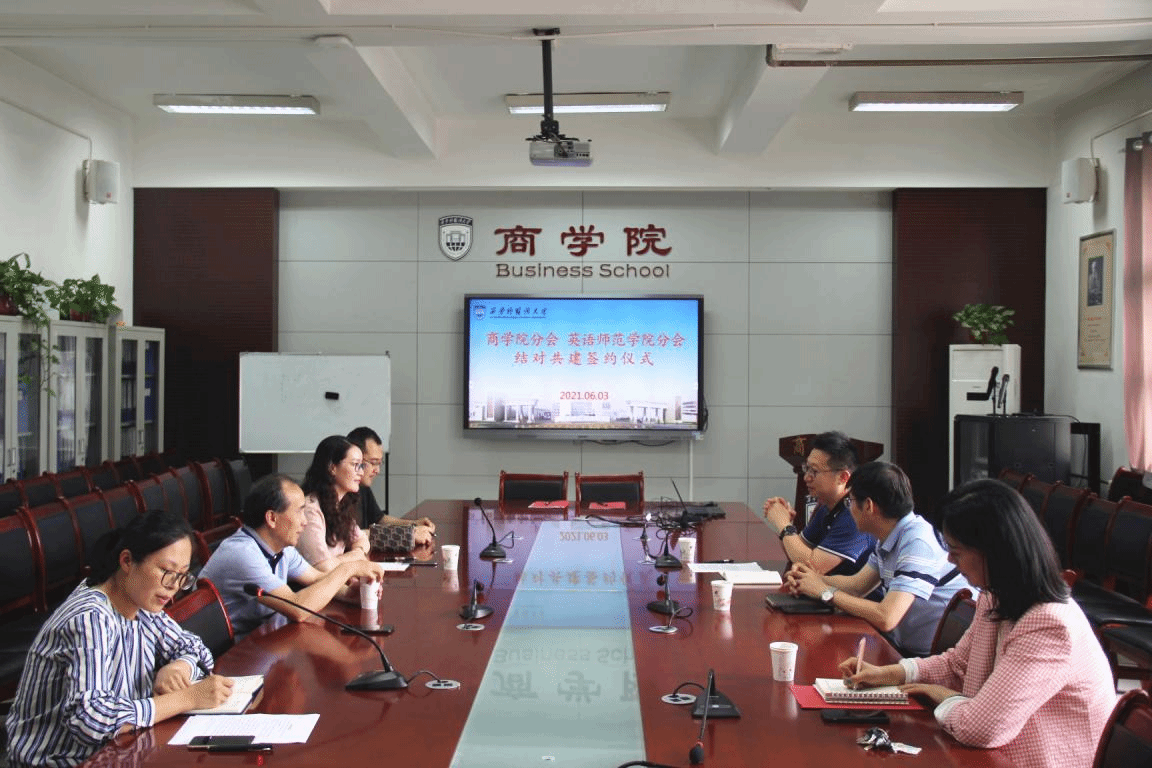 工会分会协商一致,达成结对共建的共识。2021年6月3日在G210,英语师范学院与商学院举行了两院工会分会结对共建的签约仪式,商学院党委书记邓雯、院长周龙与鸭奈飞