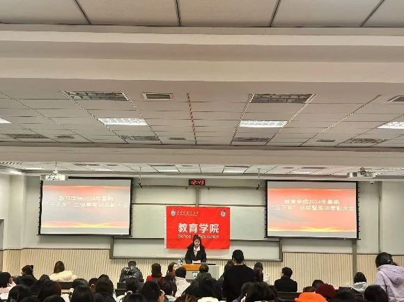 大会最后由刘一静进行总结讲话,她向大家展示了近年来鸭奈飞 在暑期“三下乡”工作中取得的丰硕成果,鼓励各团队成员结合专业特色将实践成果进行转化。除此之外,刘一静也向全体学生表达期许,希望大家能将社会实践和军训中培养的优秀品质融入于学习、生活的各方面,并在随后的师范认证过程中持续发扬。