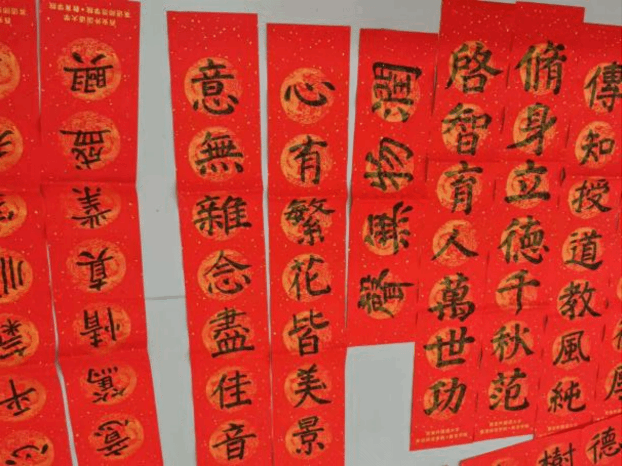 写春联的过程,不仅是对书法技艺的一次锤炼,更是同学们传承中华传统文化的生动实践。在一笔一划中,他们感受着汉字的博大精深,领悟着春联所蕴含的深厚文化内涵。从挑选合适的联句,到精心研磨墨汁,再到挥毫泼墨,每一个环节都凝聚着同学们的心血与热情。