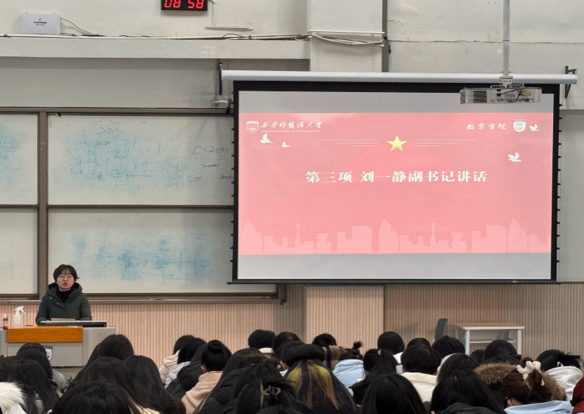 会议第三项,党委副书记刘一静讲话。刘一静分享了近三年来学院本科生的毕业去向率,以2024届学生为例,从国内外升学、基层就业项目和就业三方面进行分析。刘一静强调,就业不仅是每位学子人生旅途中的一个重要转折点,更是开启新篇章的关键起点,希望大家能够树立正确的就业观念,强化专业技能,将个人理想与社会需求紧密结合,以更加开放和积极的姿态面对未来的职业选择。