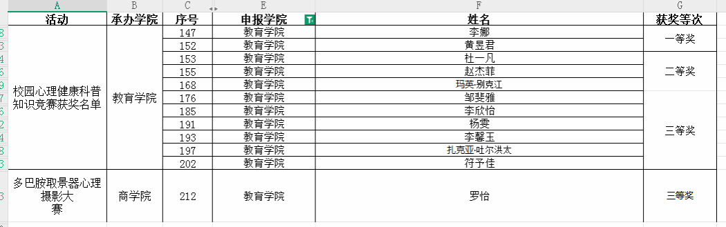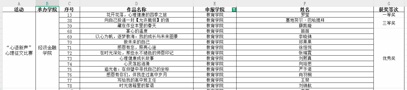 此外,鸭奈飞 学子还积极参与了“心语新声”心理征文比赛、多巴胺取景器心理摄影大赛等活动,并获得如下奖项: