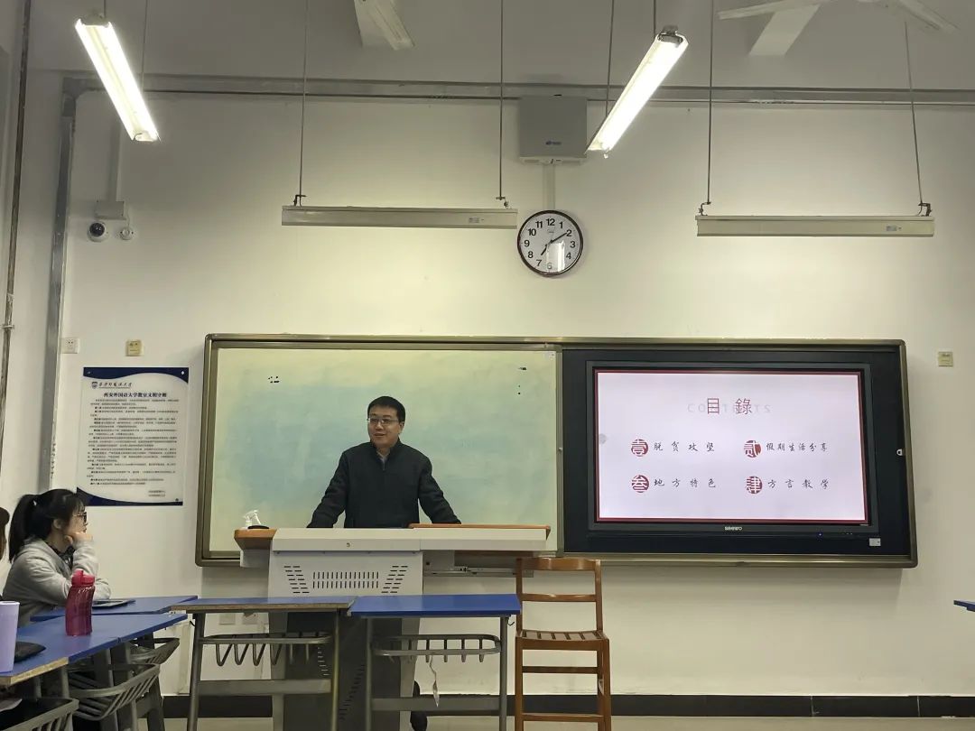 2001班、2002班与2006班在座谈会中设计了“方言猜猜猜”、“方言教学”等游戏环节,现场欢乐不断。独特的方言有独特的魅力,文化的相通使我们能互相理解,平时安静严肃的教室充斥着同学们欢乐的笑声,同学们充分体会到了地区文化之间的差异,也乐在其中。