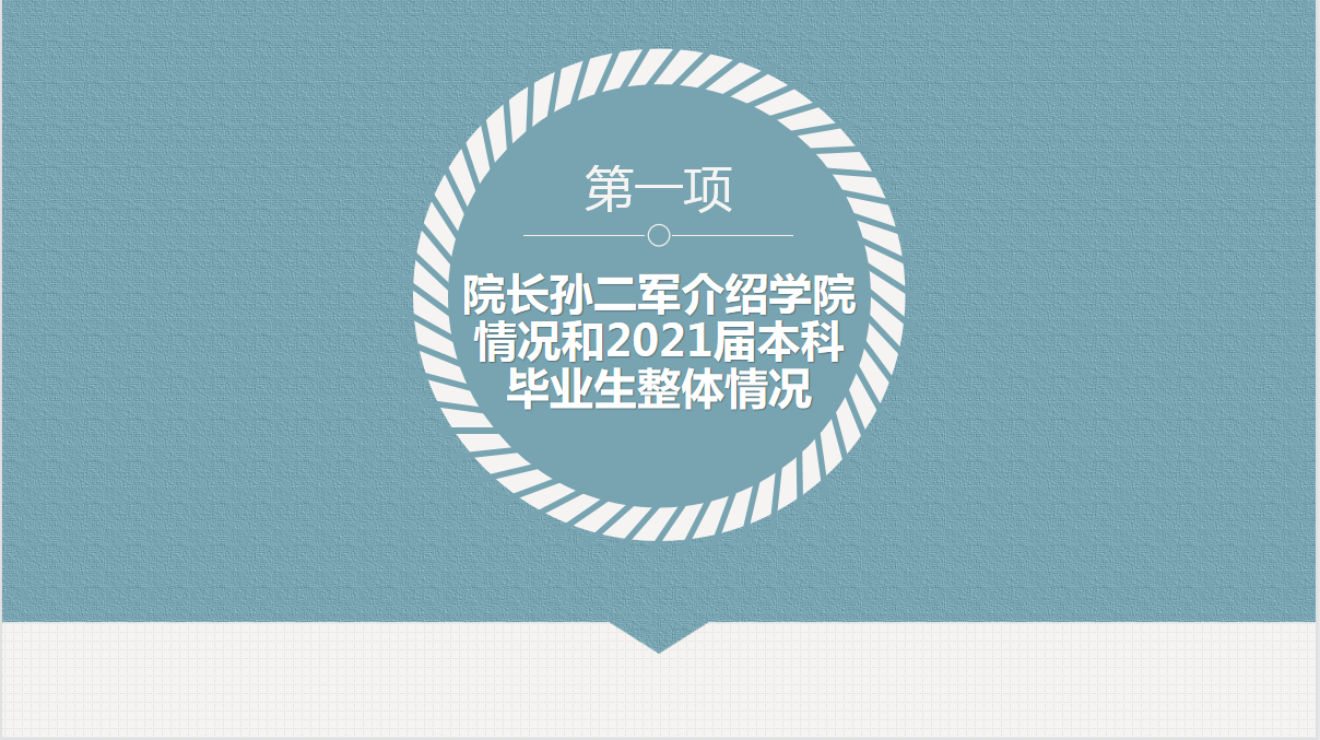 大会第三项,副院长王嘉铭副教授介绍了学院2021届毕业生整体就业情况。他向家长们介绍了学校和学院就业工作的举措,包括系统布局强机制,主动突击拓市场,院校合力抓落实等方面。强调注重分层分类,掌握学生动态,不让一个就业困难学生掉队;学院也会完善就业机制,加强学生管理。他希望家长可以重视配合,转变思想,凝聚共识,互联互动,家校多联系。