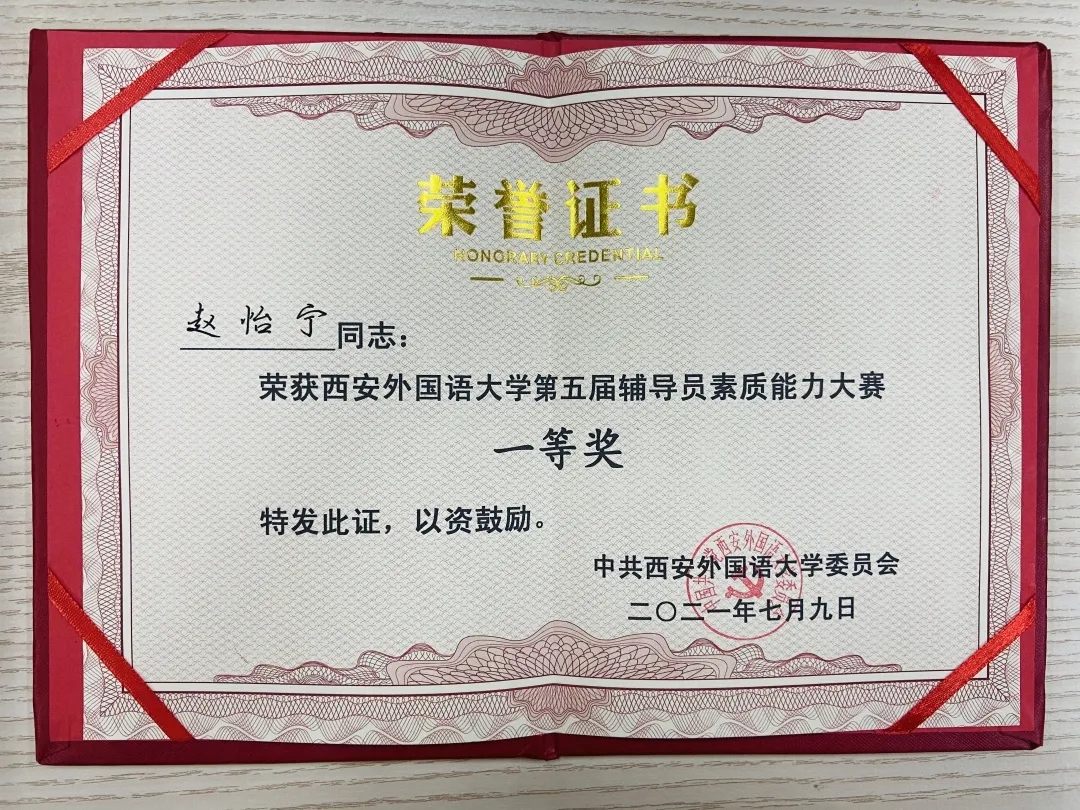 辅导员赵怡宁在比赛中表现优异,荣获一等奖(全校第二名)。