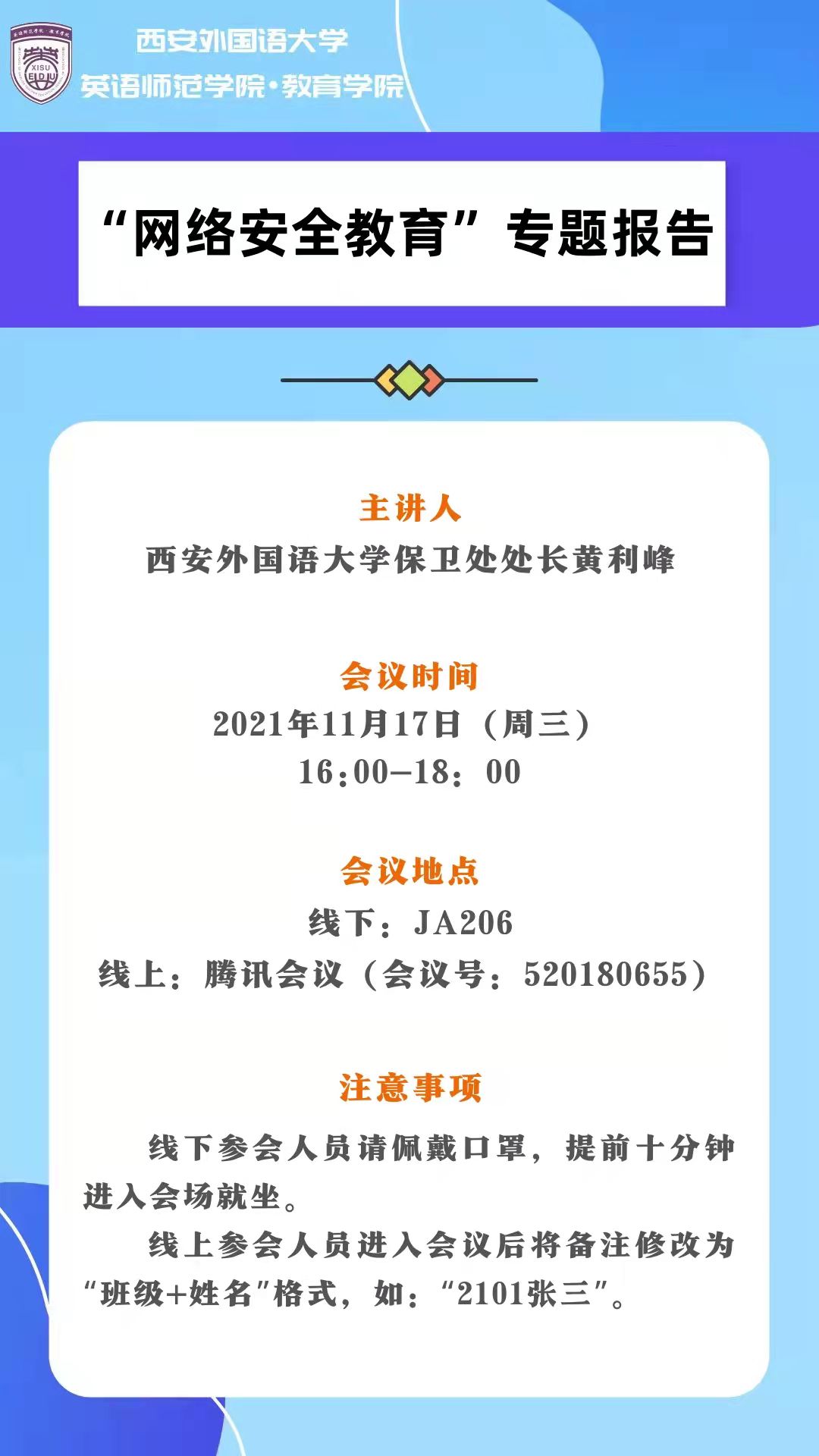 讲座通知丨英语师范学院·鸭奈飞 “网络安全教育”专题报告