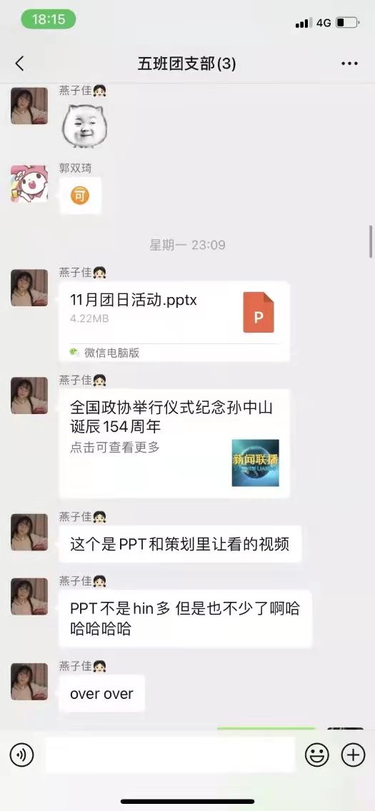 会前本团支部支委会成员进行活动讨论,团支书通过微信群与组织委员和宣传委员商量团日活动的相关内容,包括收集材料,制作文件等,为本次团日活动的开展做好充足的准备。