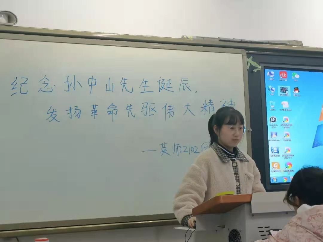最后,团支书鼓励大家完成以“纪念孙中山先生诞辰,发扬革命先驱伟大精神”为主题的作品,增强同学们时代担当精神、激发同学们的爱国精神。