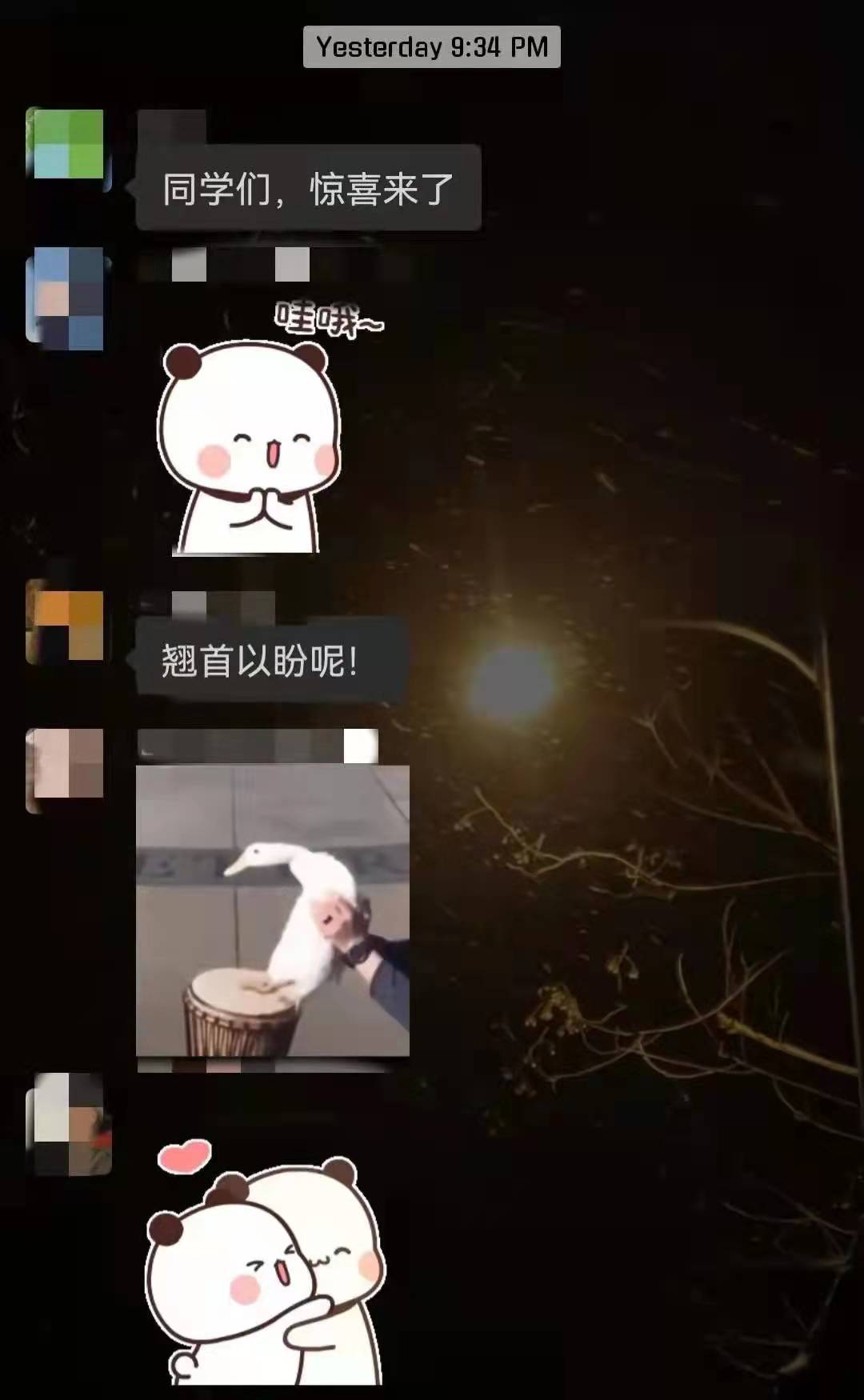 随着零时的迫近,同学们的心情都非常地激动,此时大家没有想到的是刘一静老师也在悄悄地穿越各个楼宇给同学们发放惊喜。