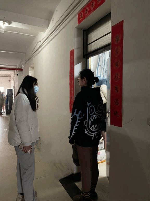 研究生会学生干部郭子萌和刘如帆在辅导员薛璐老师的指导下深入走访宿舍,与同学们进行交流,贴心询问同学们近期的学习和生活情况。