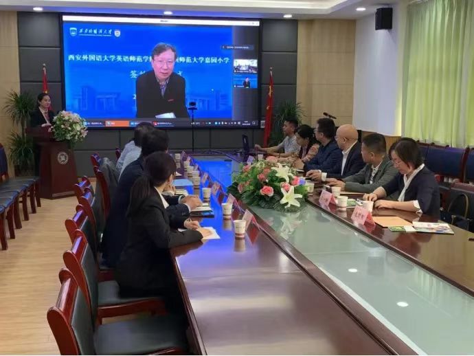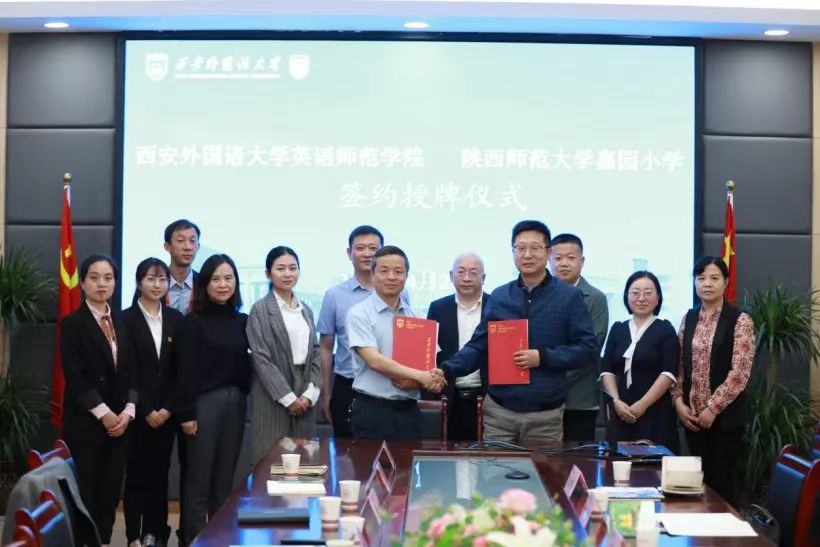 前往陕西师范大学嘉园小学开展校际共建活动,并举行了合作协议签署暨就业实习基地授牌仪式。本次活动采用线上与线下结合的方式进行,王启龙副校长(主持行政工作)在线上参加会议,陕西师范大学嘉园小学校长寇拥军,我校研究生院常务副院长汪顺玉、学工部·学生处·武装部部(处)长丁铭、英语师范学院党委书记姚玮、副书记刘一静、教研室主任王红香及2018级辅导员史欣然在线下参加了活动。