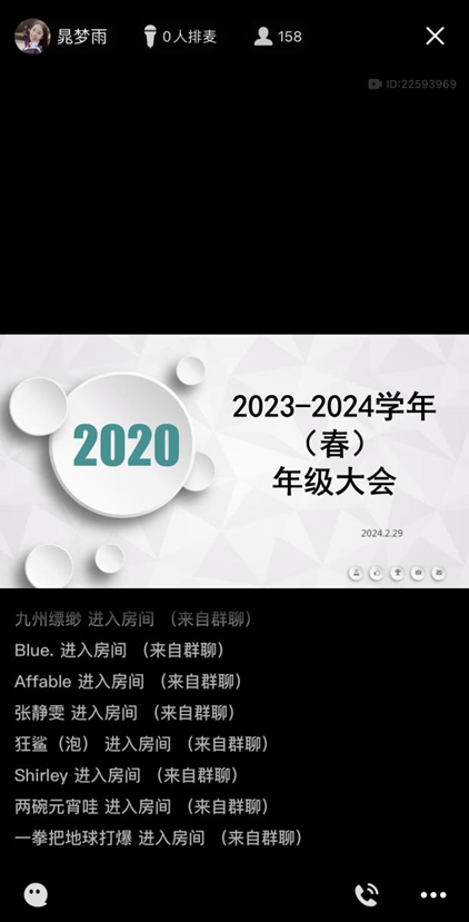 本科生2020级采取线上会议的方式开展了2023-2024学年春季学期年级大会,内容涵盖新学期各项重点工作梳理、毕业生就业材料去向登记说明以及安全纪律教育。2020级辅导员晁梦雨谆谆寄语:“不要停下,也不要急躁”。勉励同学们踏实务实,静候花开。