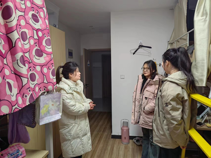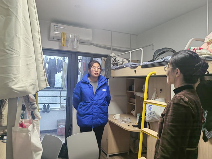 研究生辅导员薛璐、王鑫开展新学期宿舍走访工作,为研究生送上新学期的关心和问候,并提醒要增强安全意识,确保人身安全。