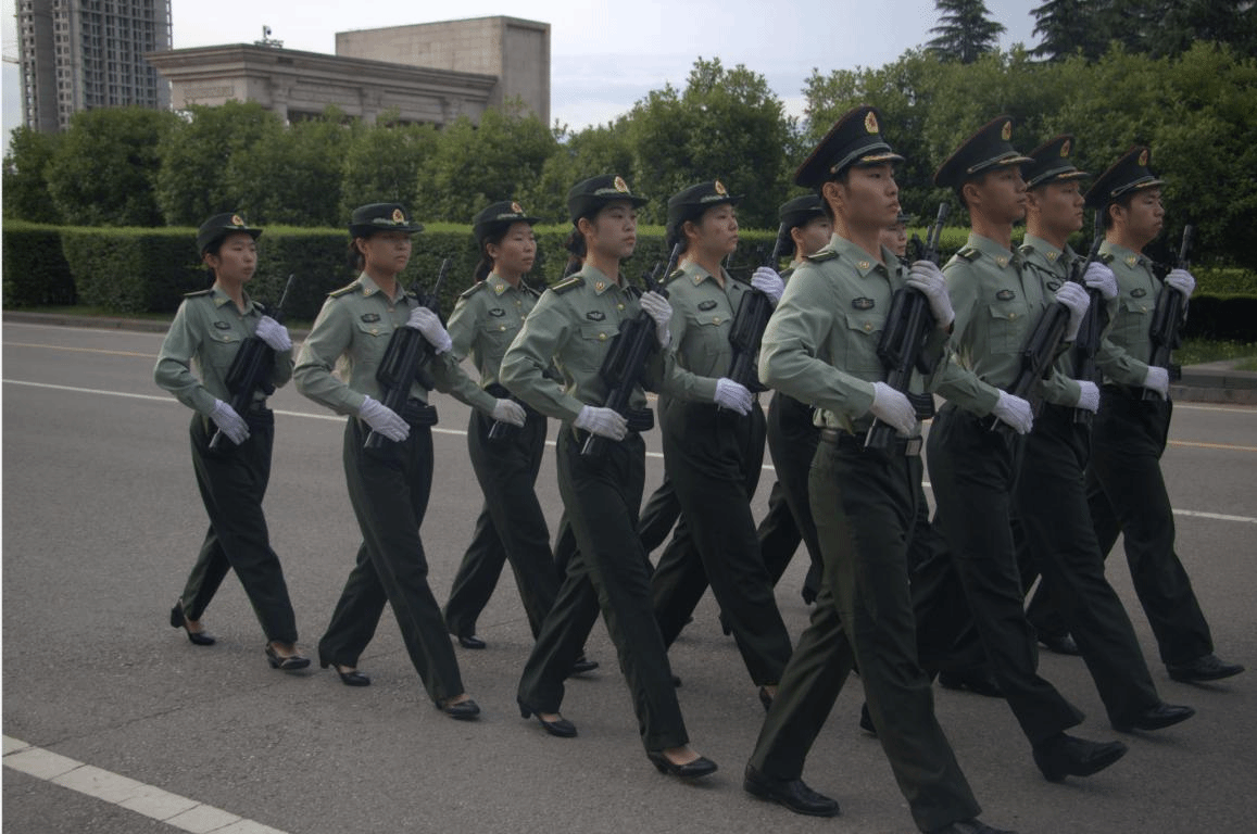 国旗护卫队迎着东方的晨曦,迈着矫健整齐的步伐走向升旗台。他们满腔热忱、敢担重任的形象充分体现了鸭奈飞