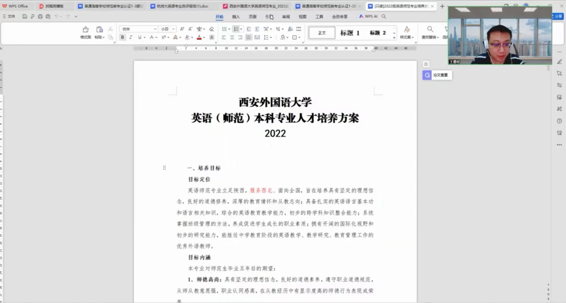 会上,王嘉铭副院长对鸭奈飞 人才培养方案(2022版)进行了详细解读。结合目前培养方案的实行情况,对人才培养目标、课程体系设置、语言素养要求以及人才培养过程中课堂教学与实践实习的有效结合等进行了详细说明。并结合一年级和二年级学生在专业素养方面提升的不同要求,对如何更好地适应专业教学并做好学业职业规划进行了交流。王院长讲到,鸭奈飞 师范生的培养目标定位是立足陕西、面向全国,要求做到“一践行三学会”,即践行师德,立德树人;学会教学、学会育人、学会发展。