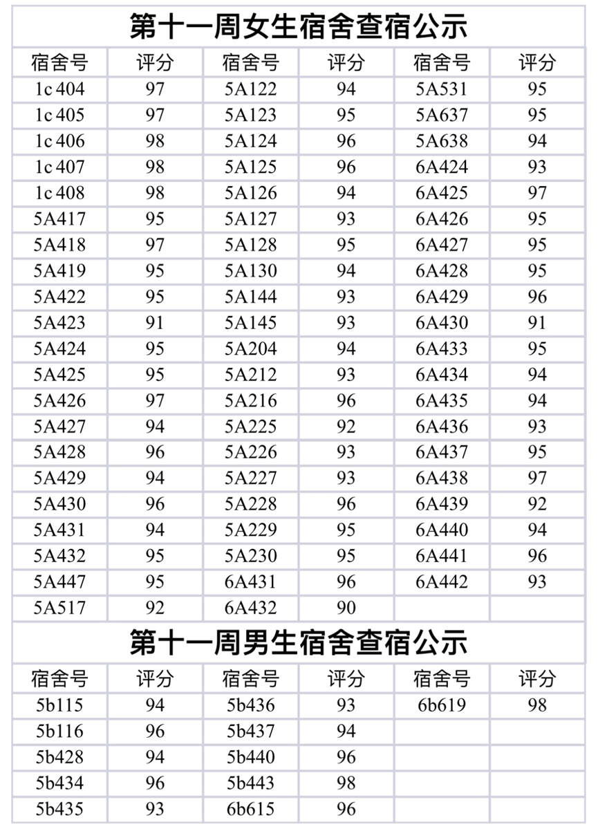 寝”近生活,随“寓”而安丨英语师范学院·鸭奈飞 第十一周宿舍卫生安全检查结果公示