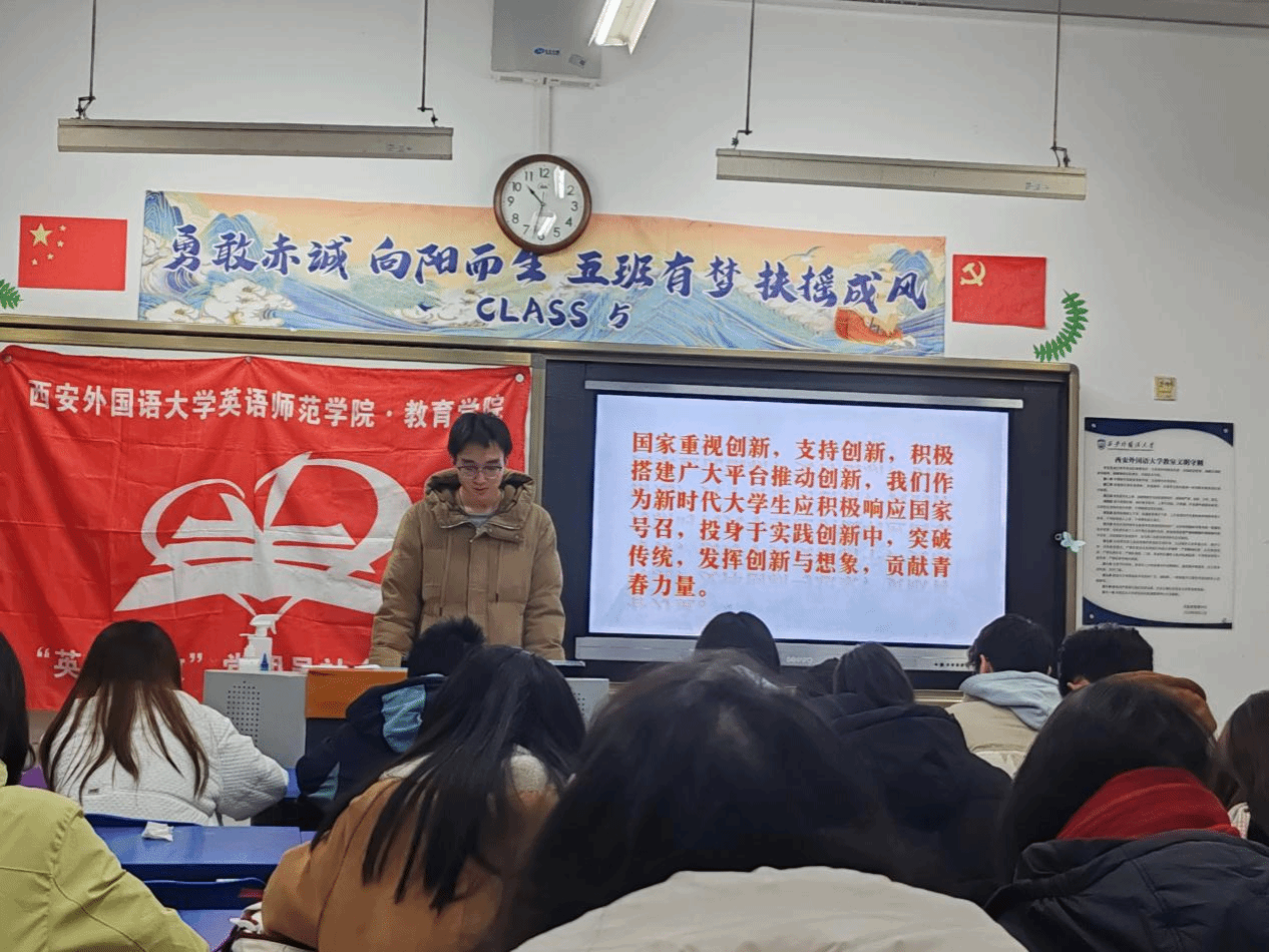 最后,团支书高录乐从总结深化,师情寄语出发,强调了激发青年创新活力的重要性。引导周围人积极树立创新意识,共同为国家创新做出贡献,为祖国的繁荣稳定注入源源不断的活力。