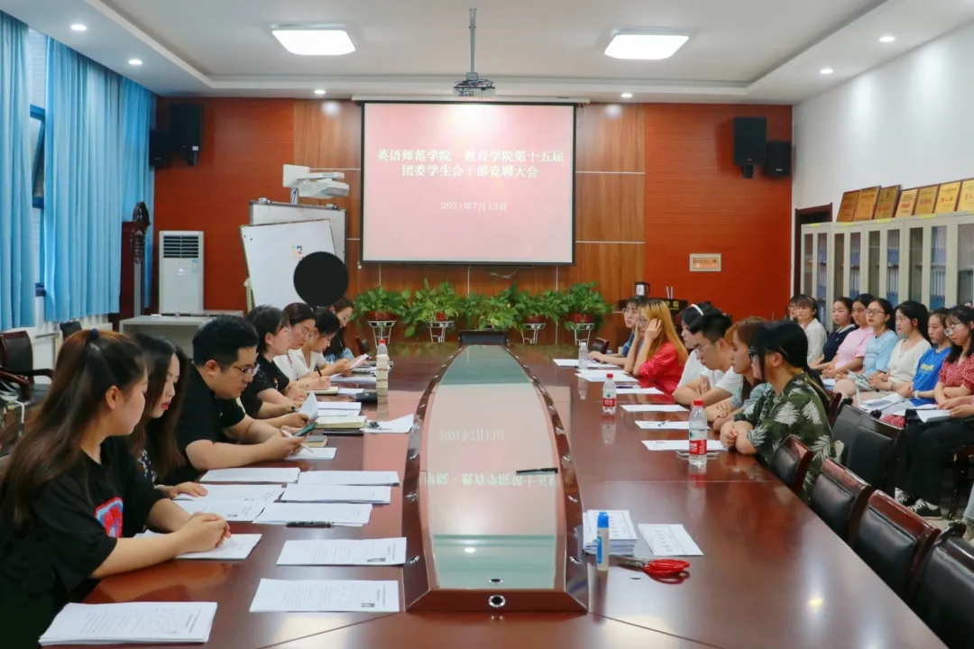 召开第十五届团委学生会干部竞聘大会。本次竞聘大会的亮点在于面对学院全体学生,不再局限于团委学生会内部。学院党委副书记刘一静老师、学工办主任李瑞静老师、王鑫、晁梦雨、绪道恒、白蓉蓉等辅导员老师以及第十四届主席团成员参加了本次会议,会议由2020级辅导员晁梦雨老师主持。
