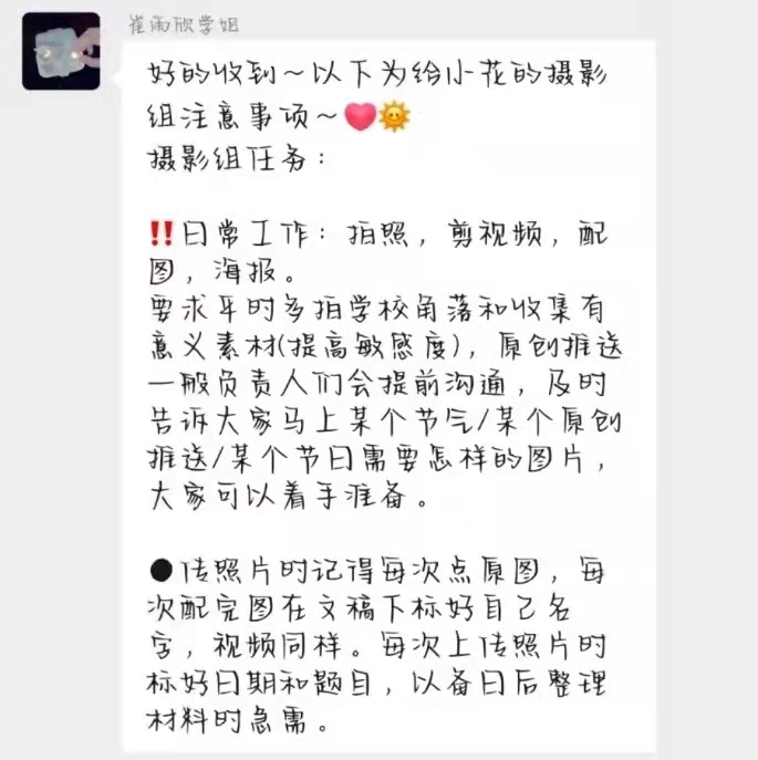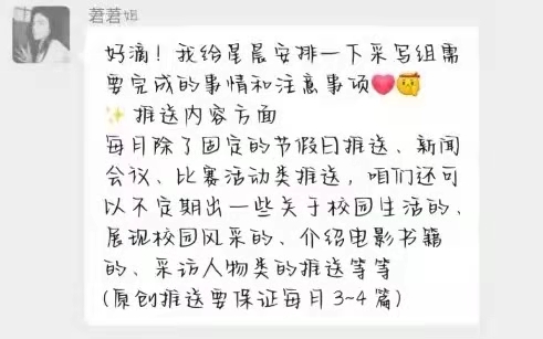 为了弥补负责人在工作过程中所遇到的问题与不足,更好的开展下一阶段的工作,文艺部采用线上方式与上届负责人进行了详细的工作交接。上一届负责人详细讲解工作分工、出现问题的解决方法等多方面内容。