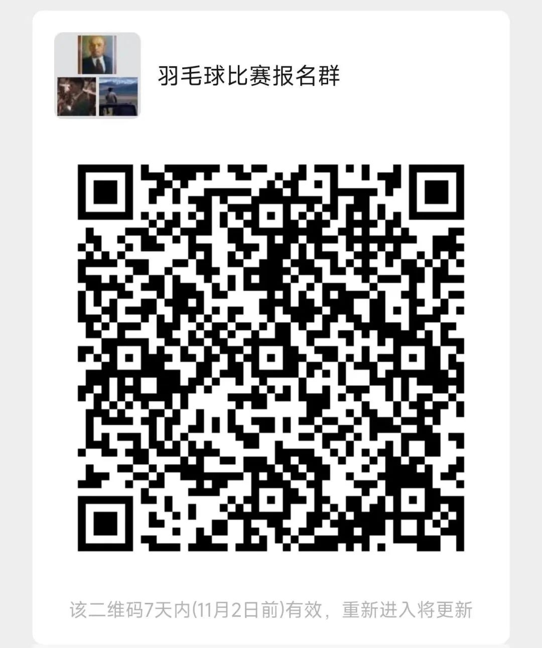 参赛同学扫码进入比赛群聊,关注群内报名信息。