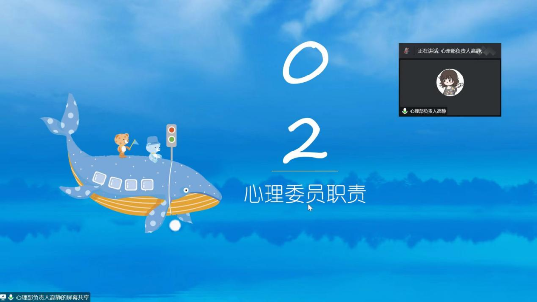 团学心理部负责人于蓝翔、高静主持了这次线上会议。
