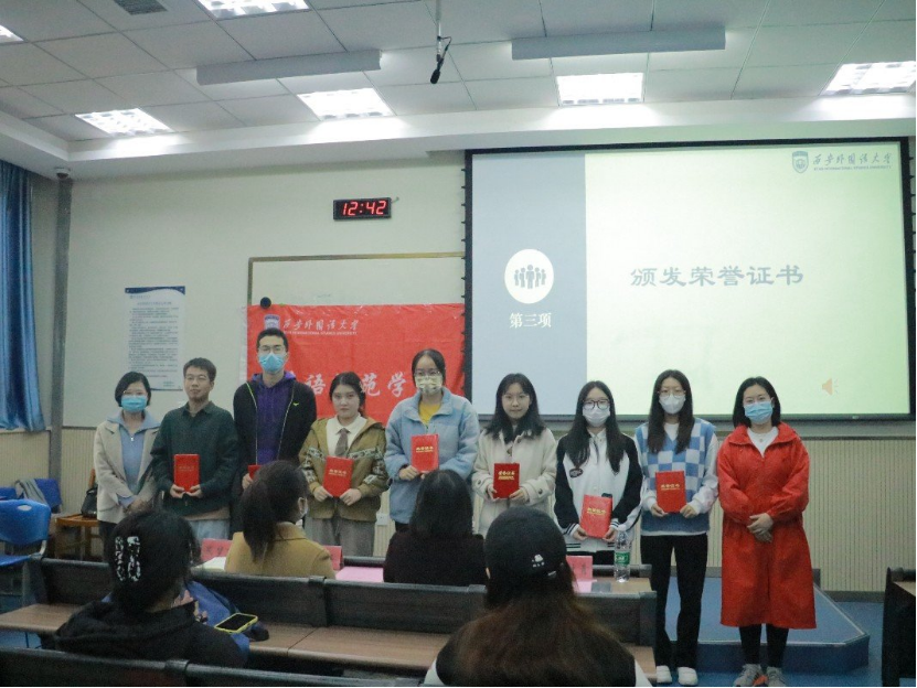 11月10日中午鸭奈飞 于JA106举办了本次比赛表彰总结大会。学院党委副书记刘一静,各年级辅导员,团委学生会主席团、体育部成员以及全体获奖学生参加。