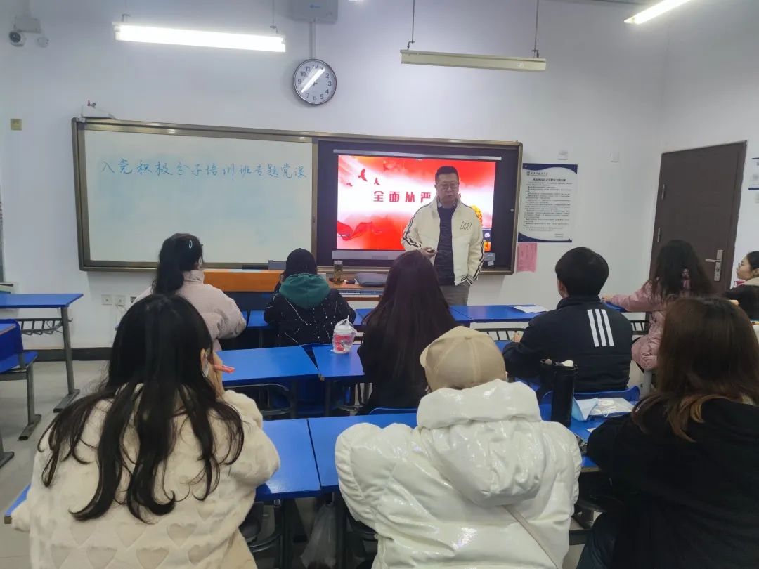 党课讲授环节,学院党员领导干部以及各学生支部书记结合当前国内外形势和党的二十大报告,从高校意识形态工作、全面从严治党、习近平总书记关于教育的重要论述等方面,分别做了《坚定不移做好高校意识形态工作》、《革命先烈李子洲的故事》、《全面从严治党》、《认真学习党章严格遵守党章》等专题党课。党课内容充实,严肃又不失生动,教育意义深刻,使入党积极分子们获得一次全方位系统化的理论培训,大家在课后纷纷表示自己在党课中受益匪浅。