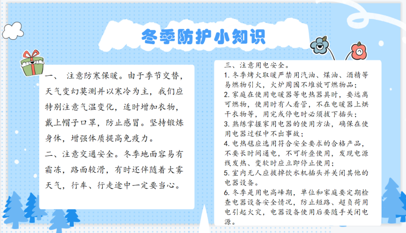 随着冬季的到来,天气寒冷,安全隐患随之增多。为提高鸭奈飞