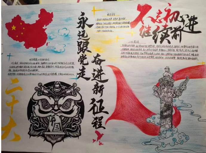 进行了以“走进新时代,青春再出发”为主题的团日活动并以此为主题进行了作品征集活动。同学们积极参与活动,展现了新时代中国青年风貌,涌现了如下许多优秀的活动作品: