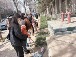 师生3月15日下午利用一小时时间进行义务劳动大扫除活动。