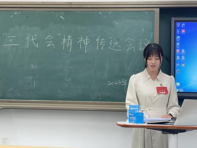 第三次团代会及第五次学生代表大会精神进行了细致深入的学习。牛小颖在领学中带领同学们重温了习近平总书记对青年的寄语,号召英师学子争做有理想、敢担当、能吃苦、肯奋斗的新时代三秦好青年,深⼊学习贯彻习近平总书记关于⻘年⼯作的重要思想和来陕考察重要讲话重要指示,全⾯贯彻落实党的⼆⼗⼤精神,认真落实省第⼗四次党代会和省委⼗四届三次全会部署,让⻘春在奋进中国式现代化新征程、谱写陕⻄⾼质量发展新篇章中绽放绚丽之花;杜亦菲从我校第三次团代会的主题、报告等内容展开宣讲,带领同学们回顾了过去几年我校共青团的工作,传达了当前我们面临的新形势新任务及未来共青团工作的计划,也表达了本人对团学工作的信心和热情;李俊霞传达我校第五次学代会精神时重点从学生会的工作回顾与总结出发,号召广大学生会成员以政治引领为根,以自我革新为要,以服务同学为根本,不断夯实信仰之基,强化组织建设,致力于为同学办更多好事实事。