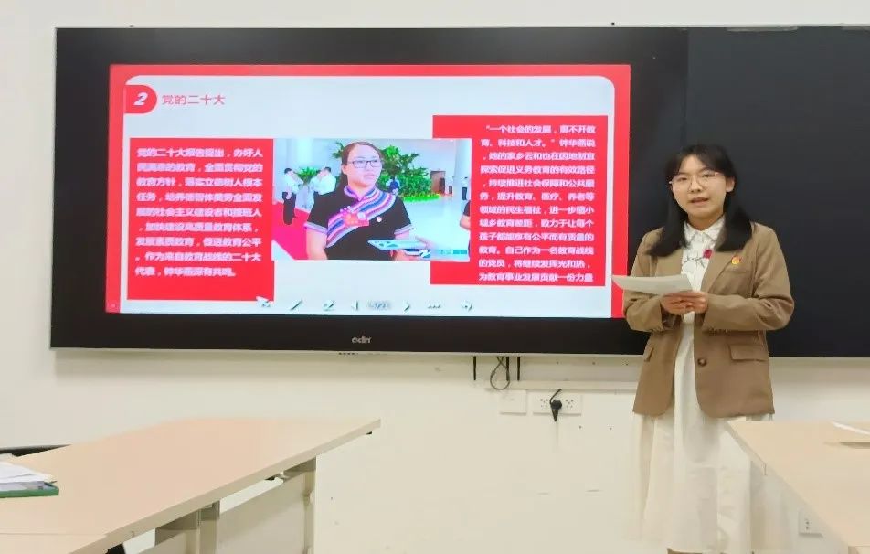 本次比赛形式为现场微团课讲授,限时8分钟,主要考察团干部对政策理论学习宣传的阐释能力,对相关政策、时政热点、学生特征、学生成长成才规律的教育引导能力。在团课展示中,各位团干部紧扣主题选取素材,围绕党的最新理论成果、新时代中国特色社会主义的伟大成就、传承红色基因等内容,以举事实、讲道理的方式呈现出一堂堂精彩纷呈的微团课,充分展现了鸭奈飞