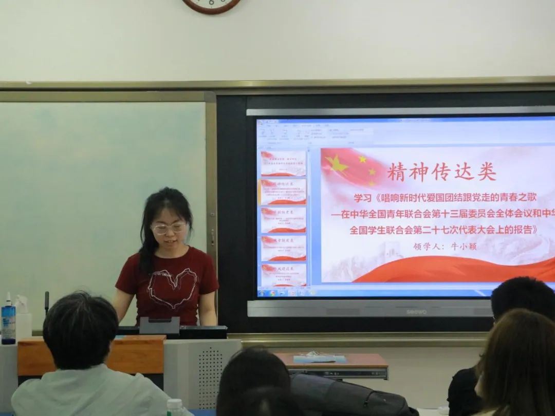 本次培训分为精神传达、学联历史、规章制度和作风建设四个板块。在精神传达类培训中,学生会主席团主席牛小颖带领骨干学习《唱响新时代爱国团结跟党走的青春之歌——在中华全国青年联合会第十三届委员会全体会议和中华全国学生联合会第二十七次代表大会上的报告》,引领学生骨干紧跟时代步伐,组织动员广大青年和青年学生坚定跟党走、奋进新时代,为党和国家事业发展作出新的更大的贡献。