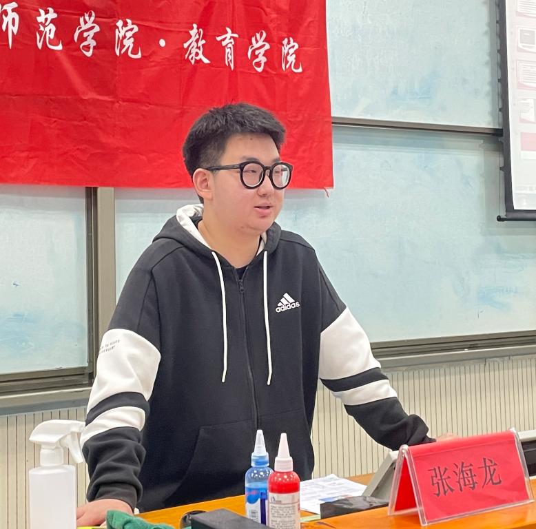随后,张海龙同学以“学生干部应当学习‘ 奉献、友爱、互助、进步 ’的服务精神”为主题,结合个人的工作经历及工作经验分享心得感悟。他指出,优秀的学生干部不仅要在做事方面认真负责,有较强的组织能力和领导能力,更要有爱心、有奉献精神,积极主动地为同学服务。作为学生干部,工作时应保持谦虚好学的态度,不断充实自己,提高自身素质,锻炼创新意识和创新精神,使自己更好地服务同学,践行使命担当。